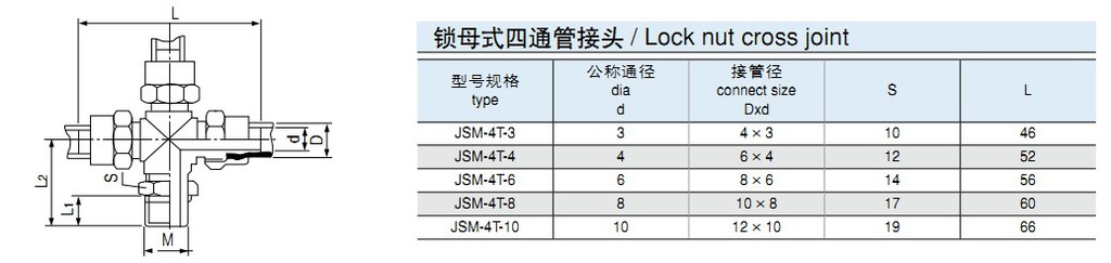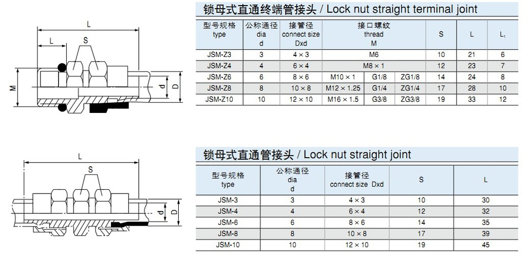 一、JSM系列锁母式管接头,适用于连接尼龙管、塑料管,*大工作压力为1.0MPa。该系列管接头具有使用方便,安装牢固等优点。