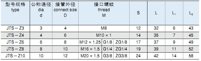 • 标记示例:调速管接头 公称通径 Ø6MM JST-Z6 M10×1