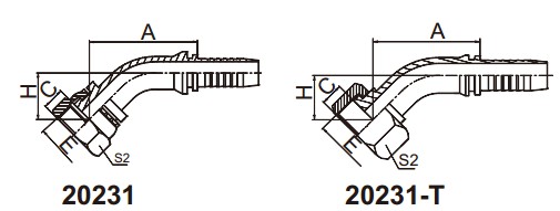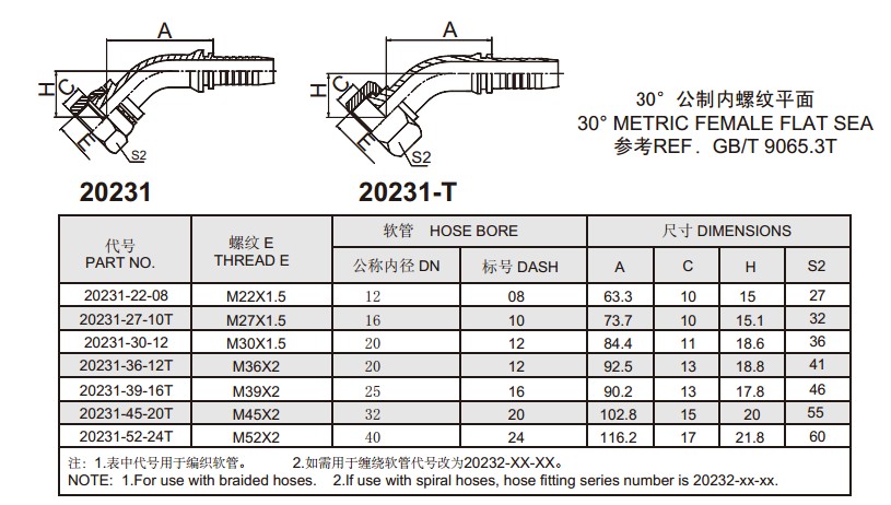 20231 30° Metric Female Flat Crimp Hose Fittings
