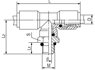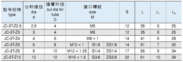 ①:插入式三通终端管接头公称通径 Ø6MM JC-3T-Z6 M10×1