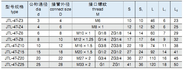 一、JT系列卡套式管接头适用于有色金属管,编织尼龙管的连接。*大工作压力为1.0MPa