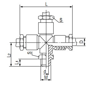 ②:卡套式三通终端变径管接头 公称通径 Ø6MM B=8MM C=4MM JT-3T-Z6-8-4 M10×1