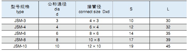 一、JSM系列锁母式管接头,适用于连接尼龙管、塑料管,*大工作压力为1.0MPa。该系列管接头具有使用方便,安装牢固等优点。