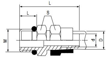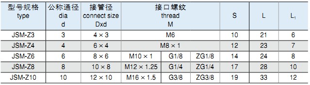 • 标记示例: ①:锁母式三通终端管接头 公称通径 Ø6MM JSM-3T-Z6 M10×1