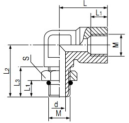 • 标记示例: ①:组合式三通终端管接头 公称通径 Ø6MM JZH-3T-Z6 M10×1