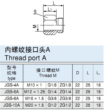 型号规格说明,下图例JGS-W-6A(JGS-K-6B)插入式外螺纹接口。高性能快速接头,外插式内螺纹接口。