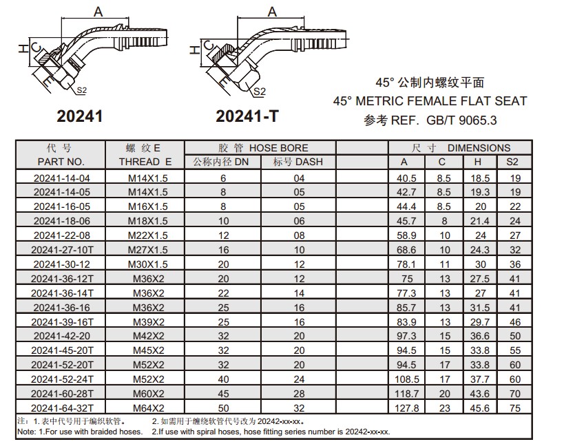 20241 45°公制内螺纹平面 扣压式软管接头