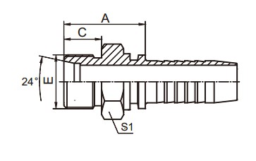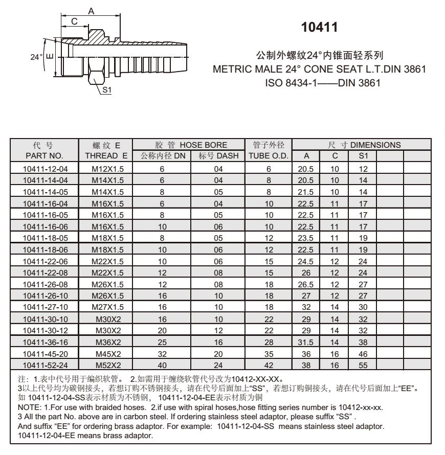 10411 公制外螺纹24°内锥面轻系列 扣压式软管接头