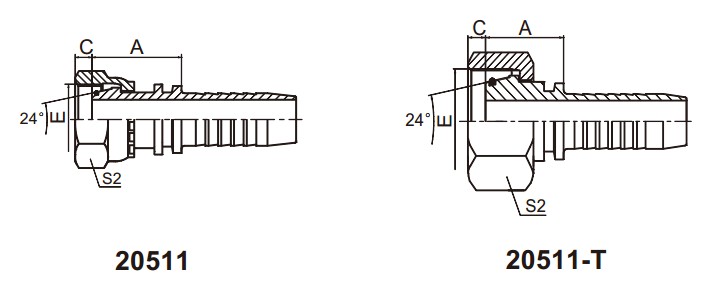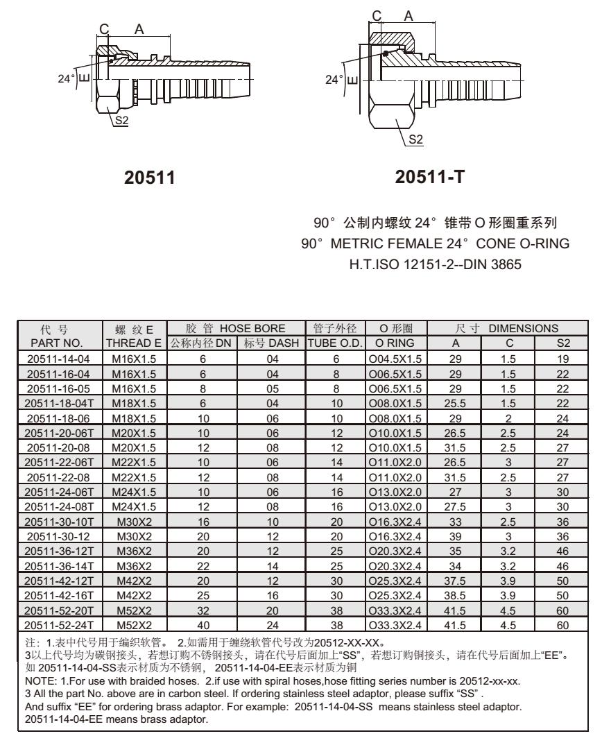20511 90°公制内螺纹24°锥带O形圈重系列 扣压式软管接头