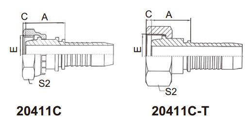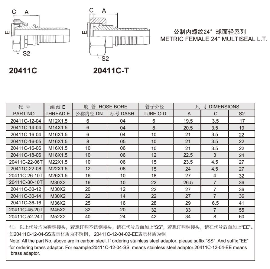 20411C 公制内螺纹24°球面轻系列 扣压式软管接头