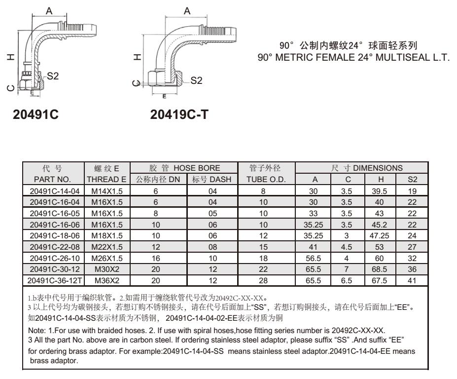 20491C 90° Metric Internal Thread 24° Spherical Light Series