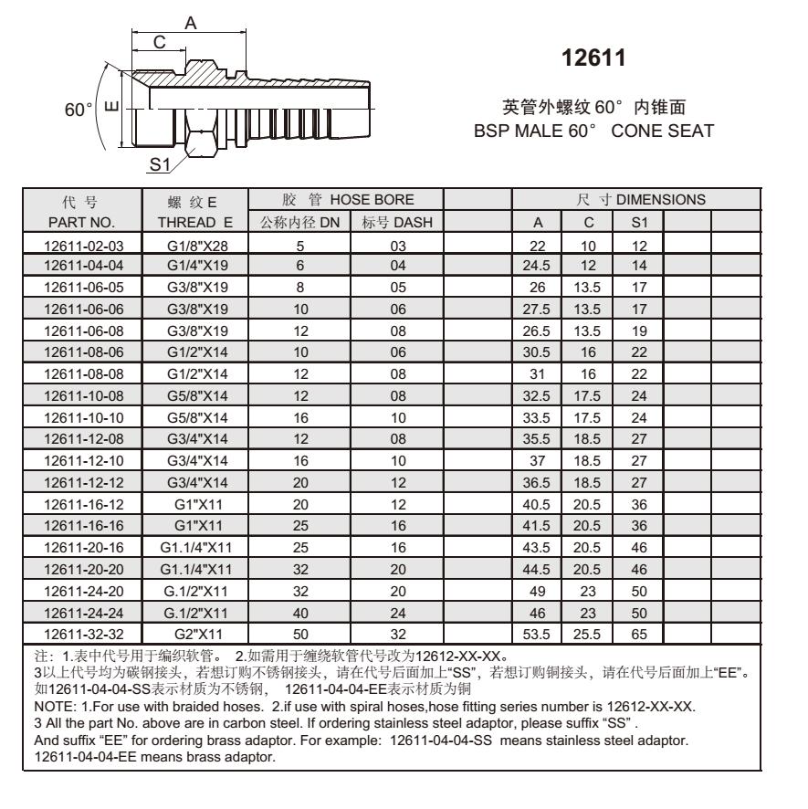 12611 British pipe male thread 60°inner cone
