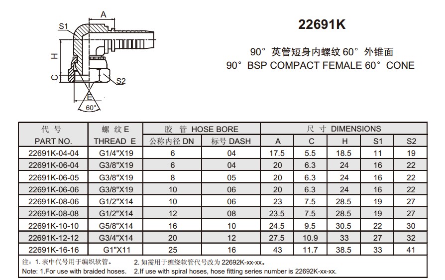 22691K 90°British Tube Short Body Thread 60°Outside Cone