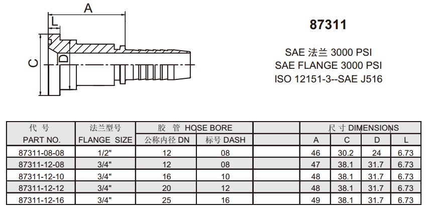 87311 SAE法兰3000PSI