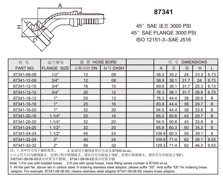 87341 45°SAE法兰3000PSI