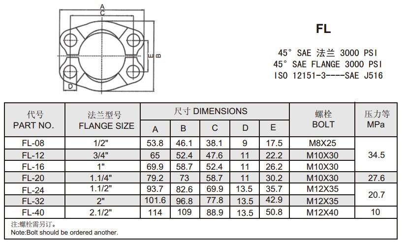 FL 45°SAE 法兰 3000 PSI