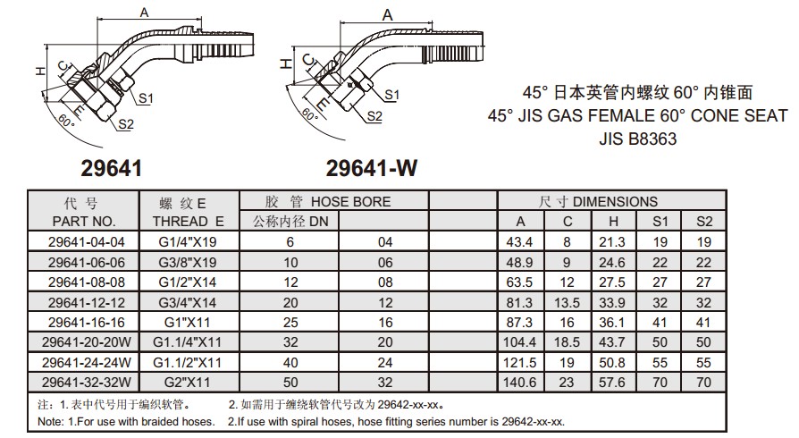 29641 45°日本英管内螺纹60°内锥面
