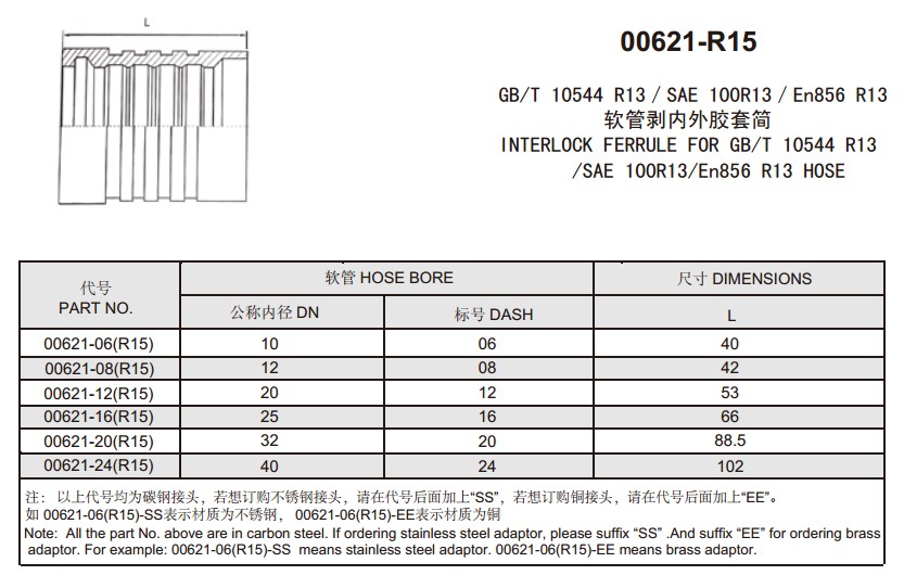 00621-R15 GB/T 10544 R13/SAE 100R13/En856 R13 软管剥内外胶套简