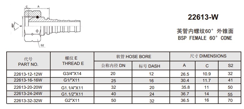 22613-W 英管内螺纹60°外锥面