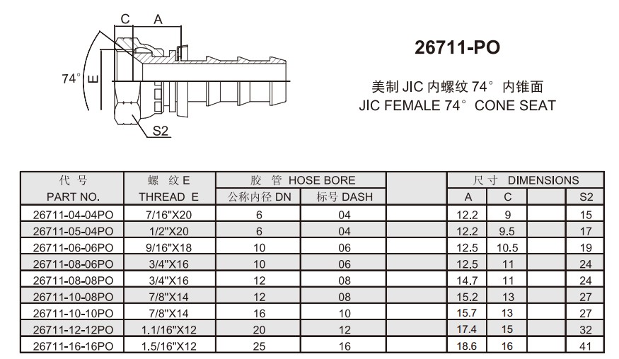 26711-PO 美制JIC内螺纹74°内锥面