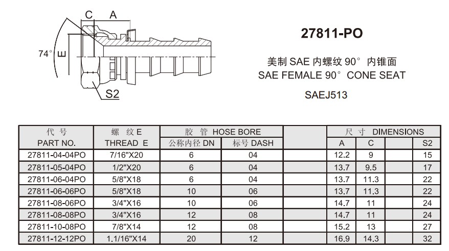 27811-PO American SAE Internal Thread 90° Internal Cone