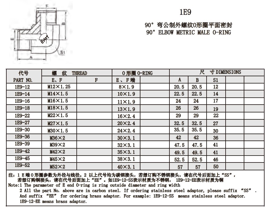 1E9 90°Bent Metric Male O-Ring Flat Seal