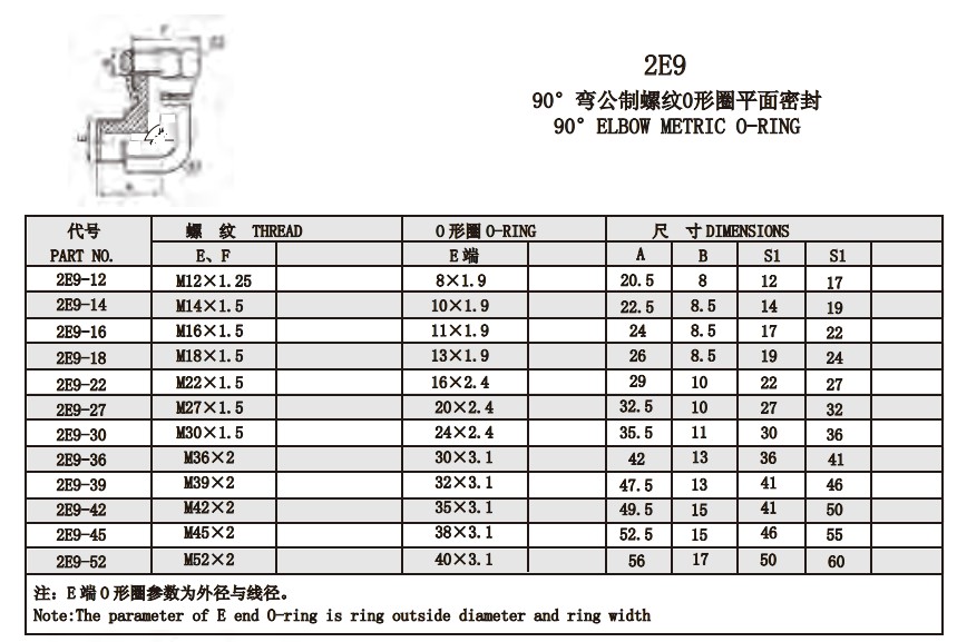 2E9 90°Bent Metric Thread O-Ring Flat Seal