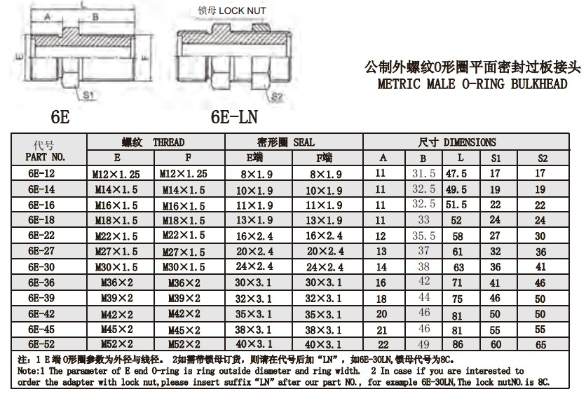 6E 6E-LN 公制外螺纹O形圈平面密封过板接头