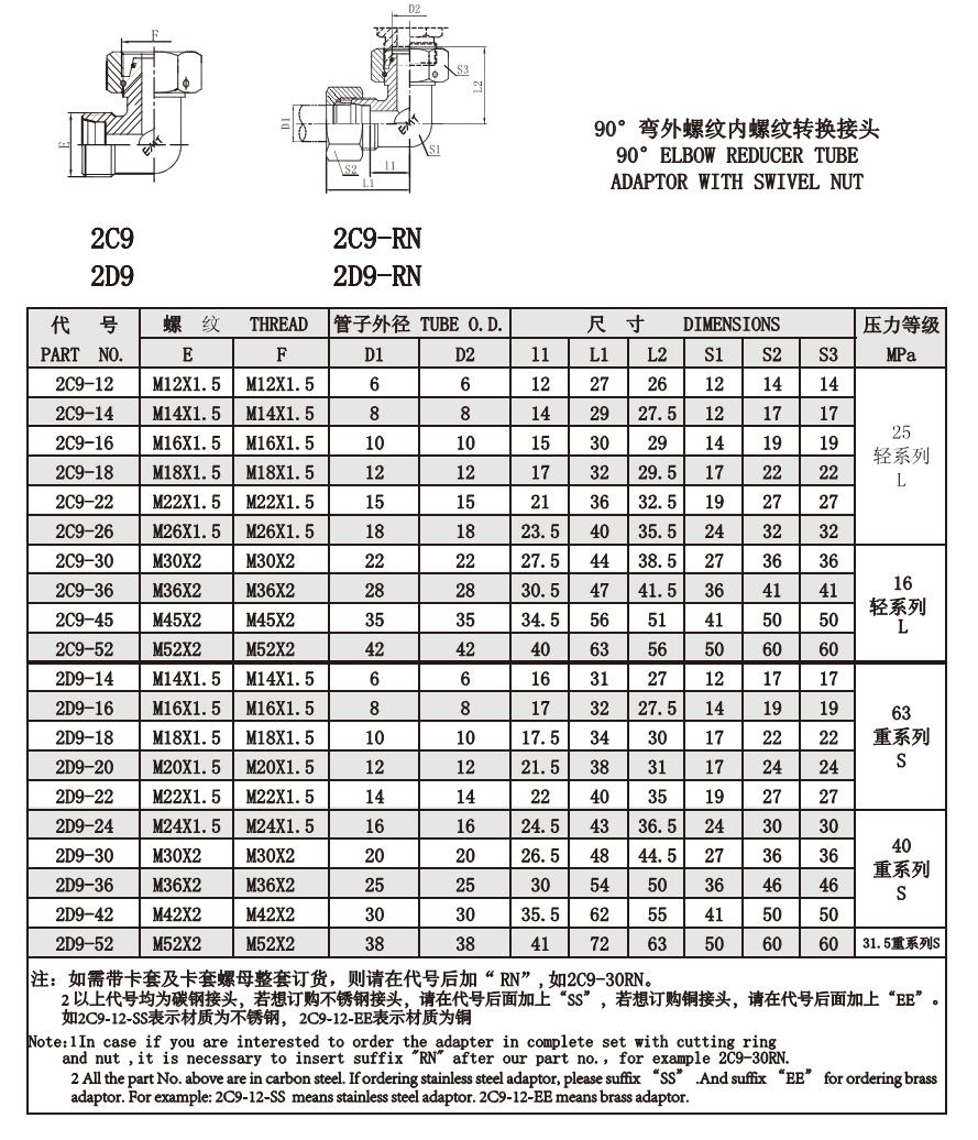 2C9 2D9 90°弯外螺纹内螺纹转换接头