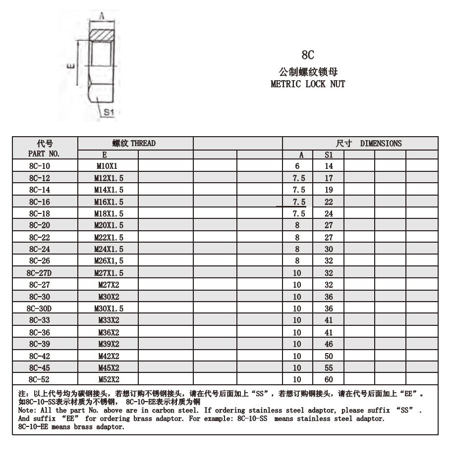 8C 公制螺纹锁母