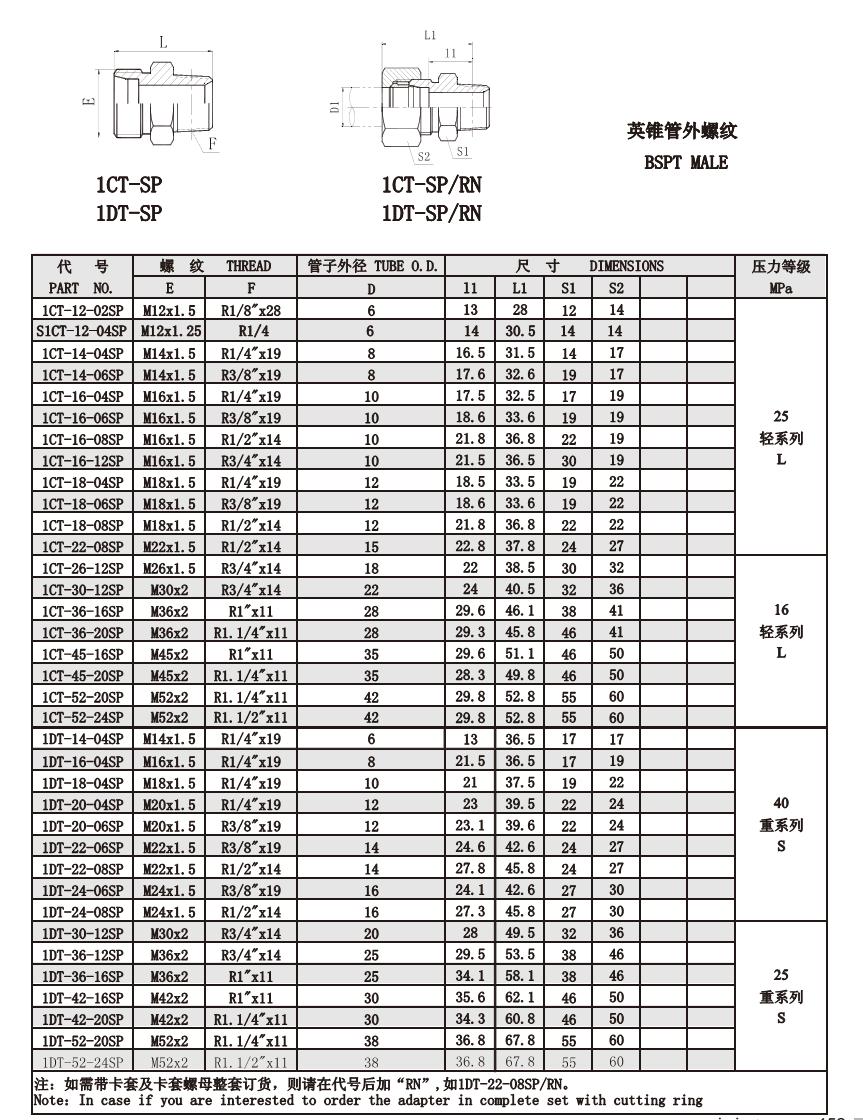 1CT-SP 1DT-SP Male Taper Pipe Thread