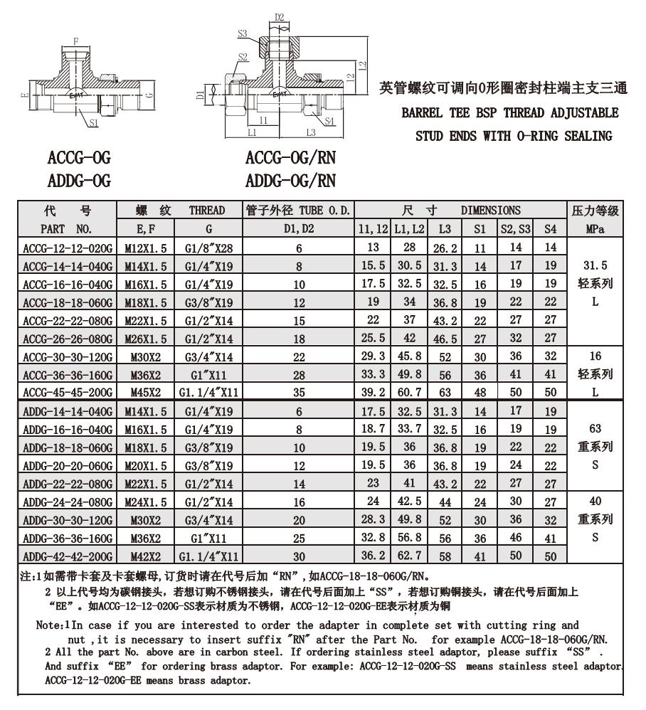 ACCG-OG ADDG-OG 英管螺纹可调向0型圈密封柱端主支三通