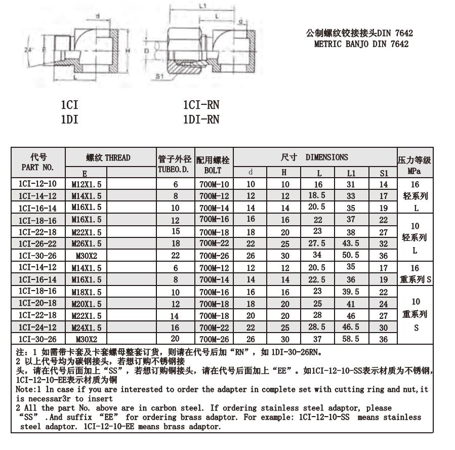 1CI 1DI 公制螺纹铰接接头DIN 7642