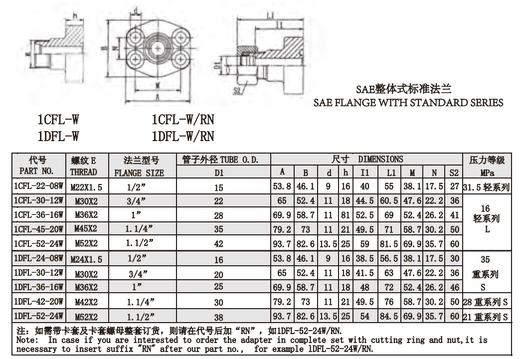 1CFL-W 1DFL-W SAE整体式标准法兰