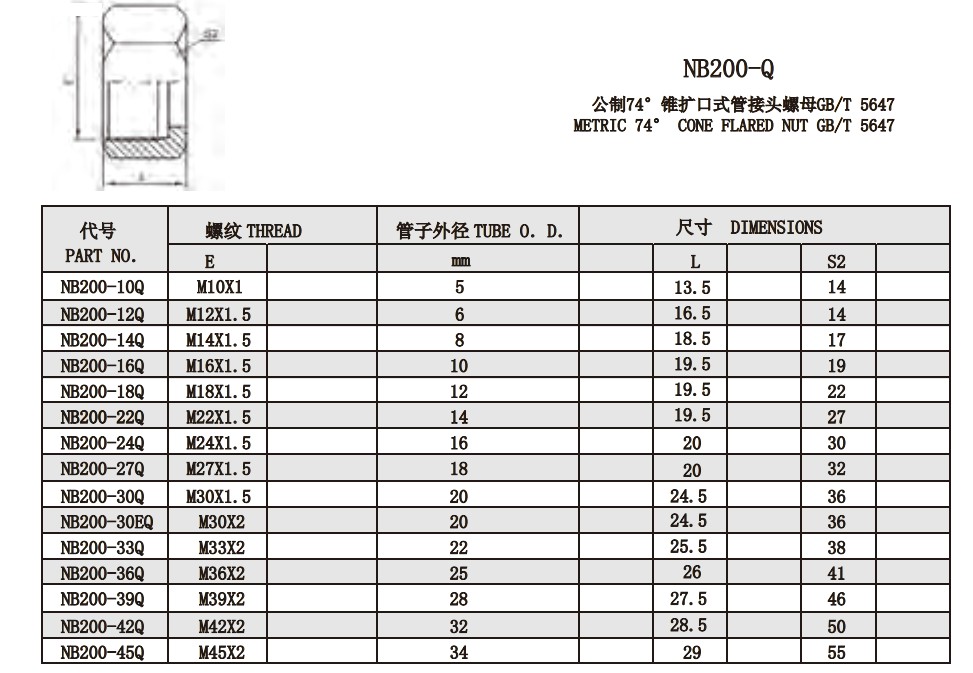 NB200-Q 公制74°锥扩口式管接头螺母GB/T 5647