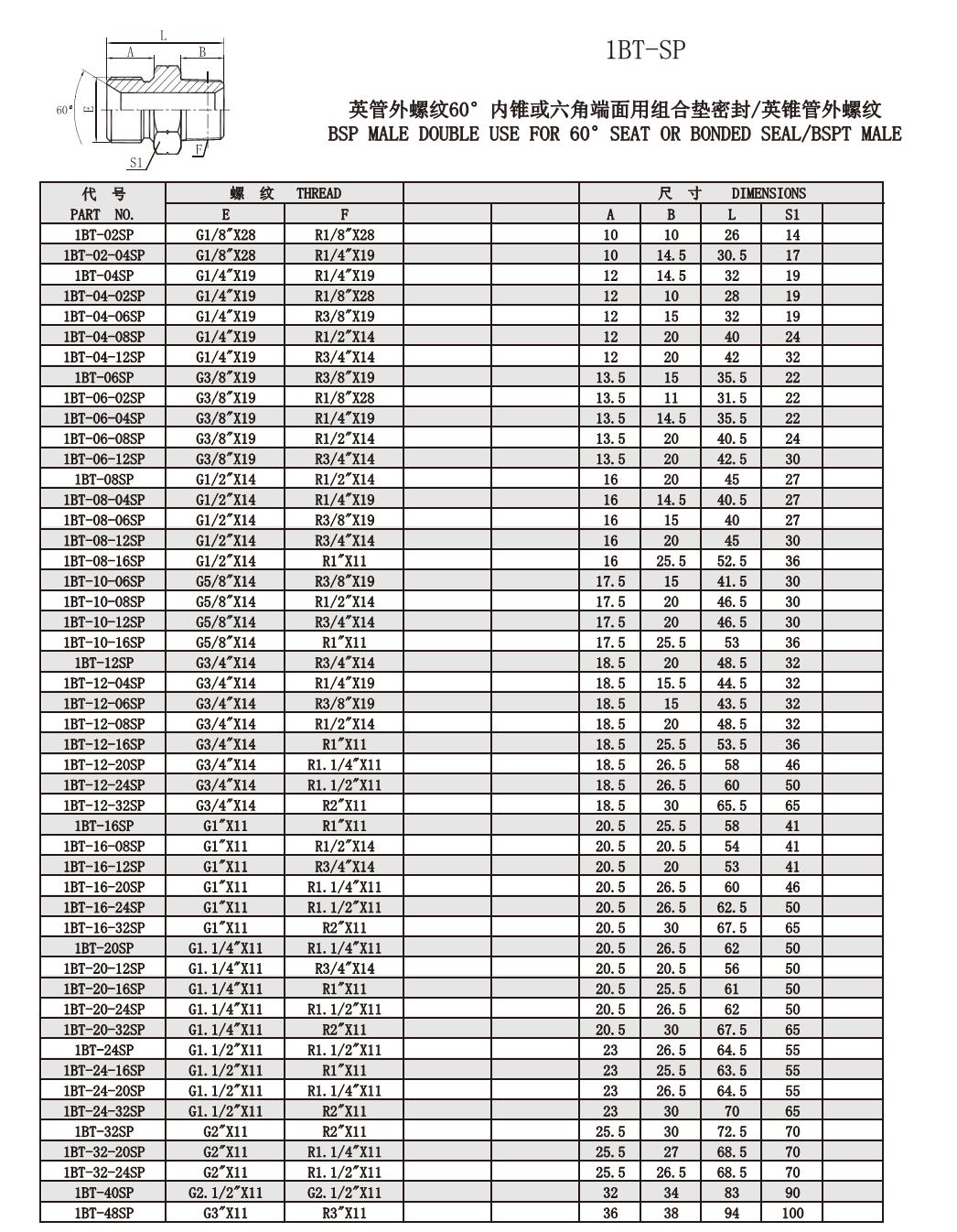 1BT-SP British pipe male thread 60°inner cone or hexagonal end face with combined gasket seal / British cone pipe male thread
