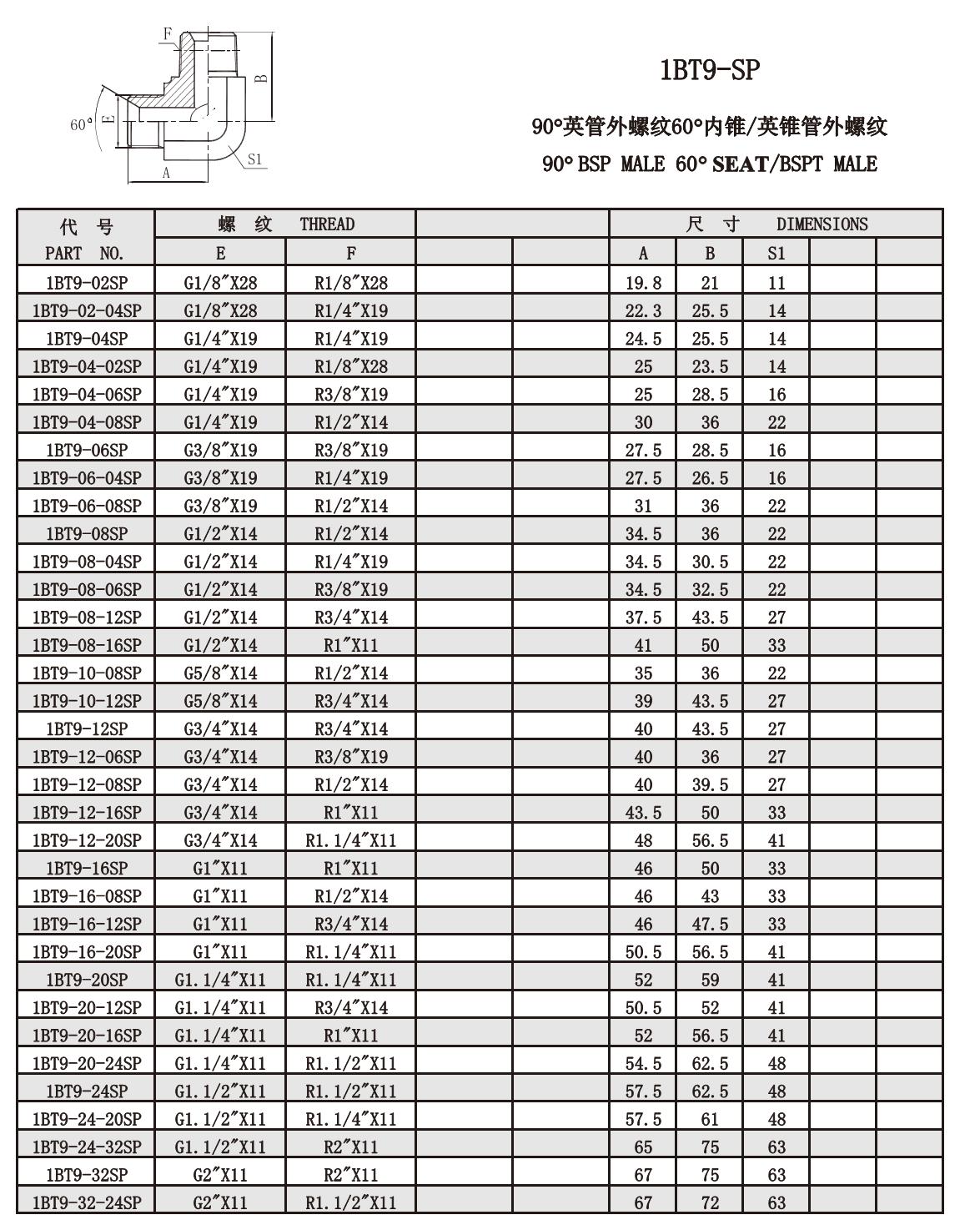 1BT9-SP 90°British pipe male thread 60°Inner cone/British cone pipe male thread