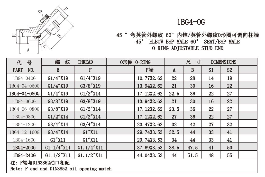 1BG4-OG 45 °弯英管外螺纹 60°内锥/英管外螺纹O形圈可调向柱端
