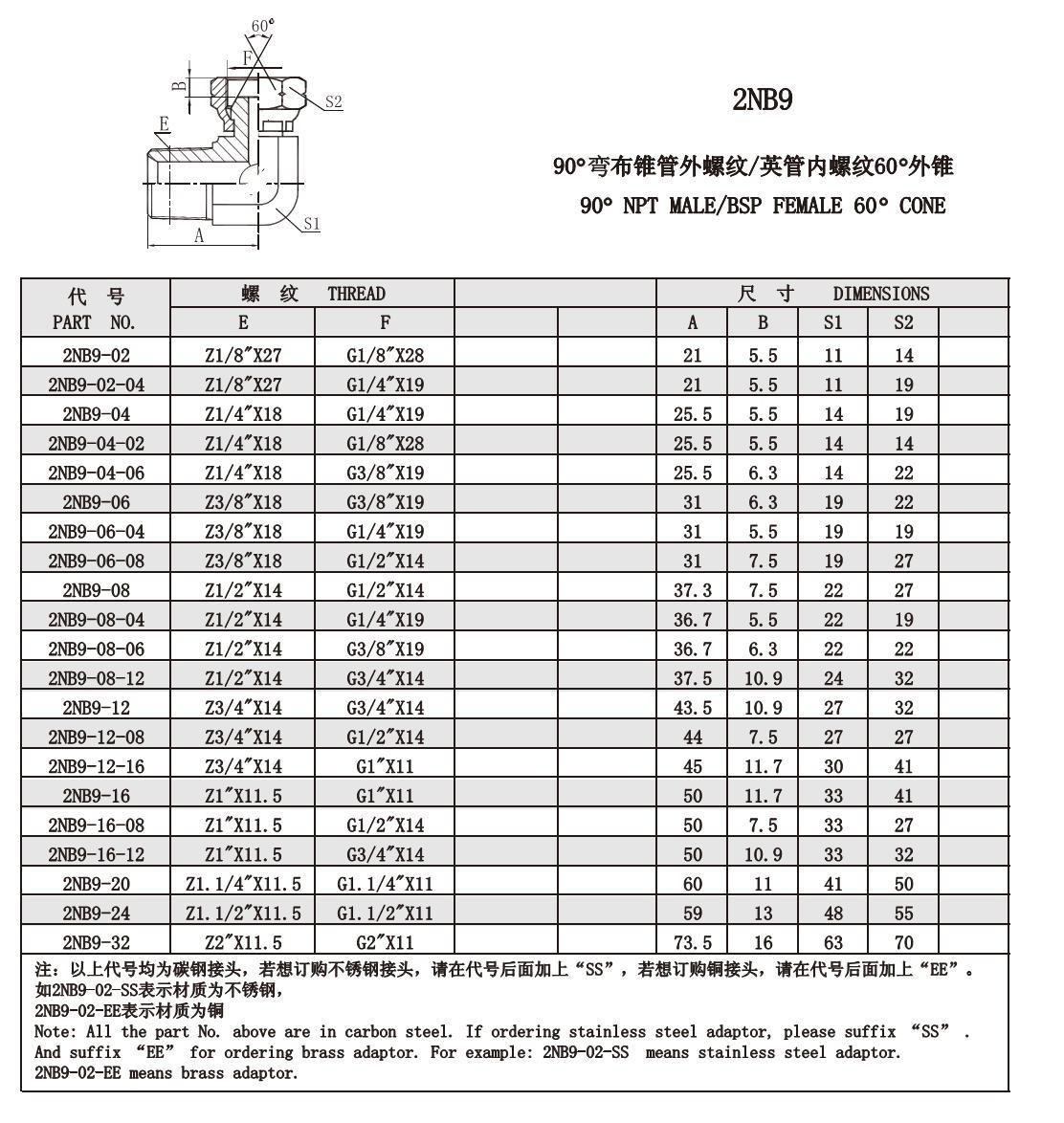 2NB9 90°布锥管外螺纹/英管内螺纹60°外锥