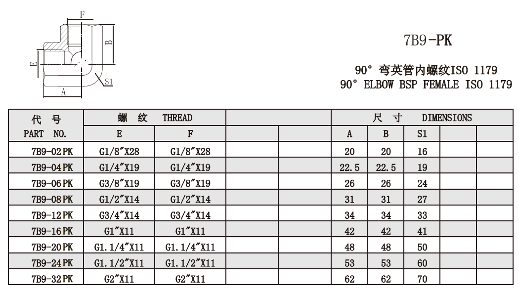7B9-PK 90°弯英管内螺纹ISO 1179
