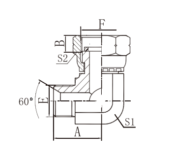 2B9-G 90°Bend British Tube Male Thread 60°Inner Cone/British Tube Female Thread Gauge Connector