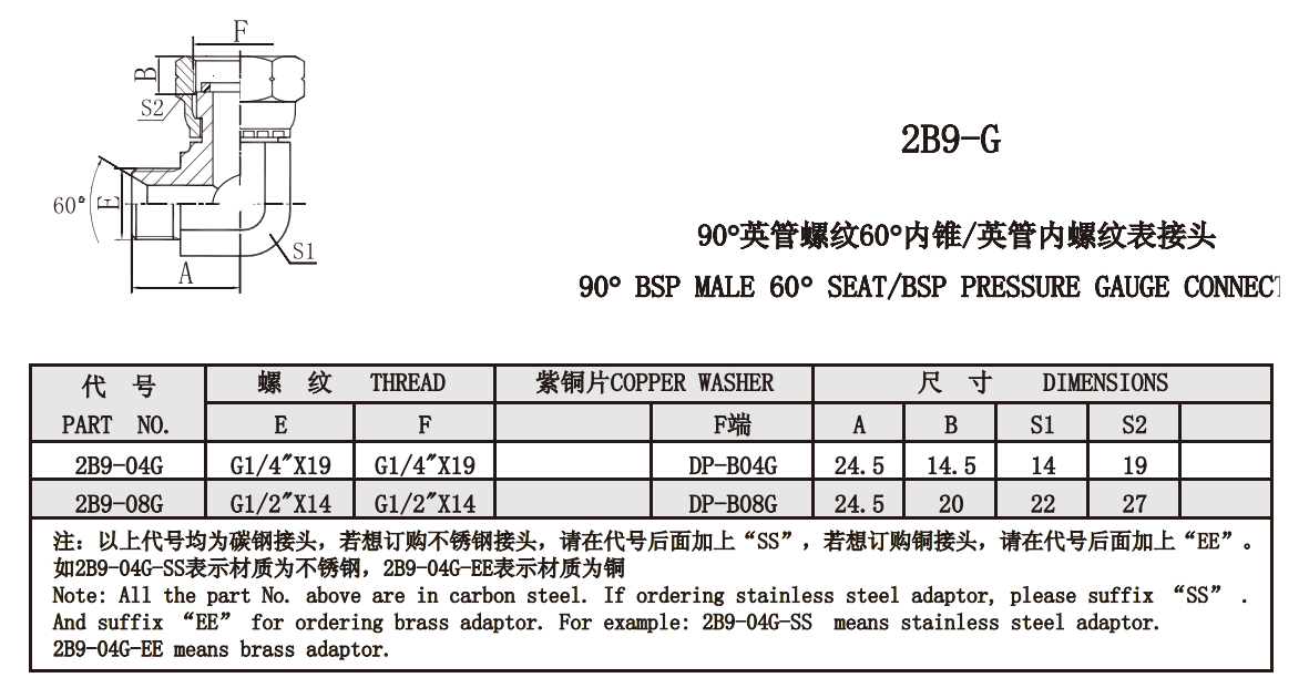 2B9-G 90°弯英管外螺纹60°内锥/英管内螺纹表接头