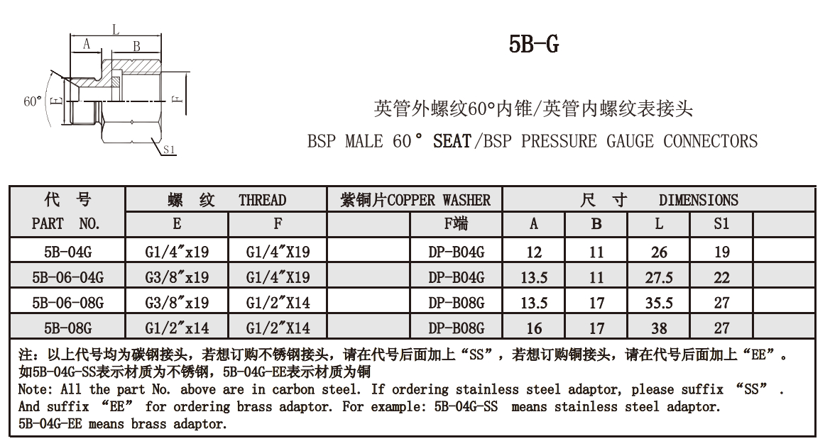 5B-G 英管外螺纹60°内锥/英管内螺纹表接头