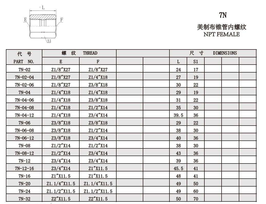 7N 美制布锥管内螺纹