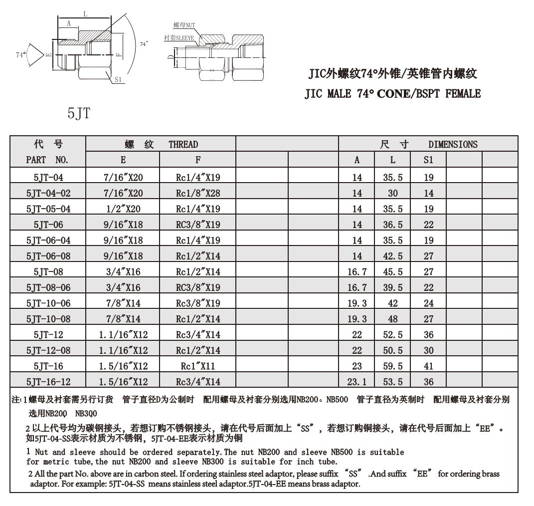 5JT JIC外螺纹74°外锥/英锥管外螺纹