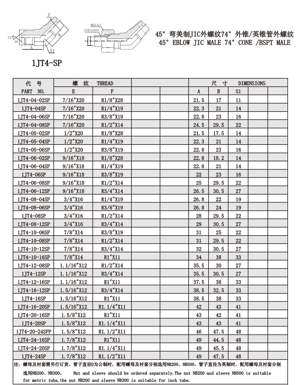 1JT4-SP 45°弯美制JIC外螺纹74°外锥/英锥管外螺纹