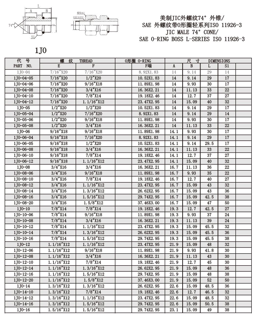 1J0 美制JIC外螺纹74°外锥/ SAE 外螺纹带O形圈轻系列ISO 11926-3
