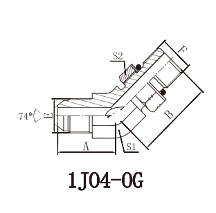 1J04-OG 45° Bend JIC Male Thread 74° Male Cone / SAE Male Thread With O-Ring Light Series ISO11926-3