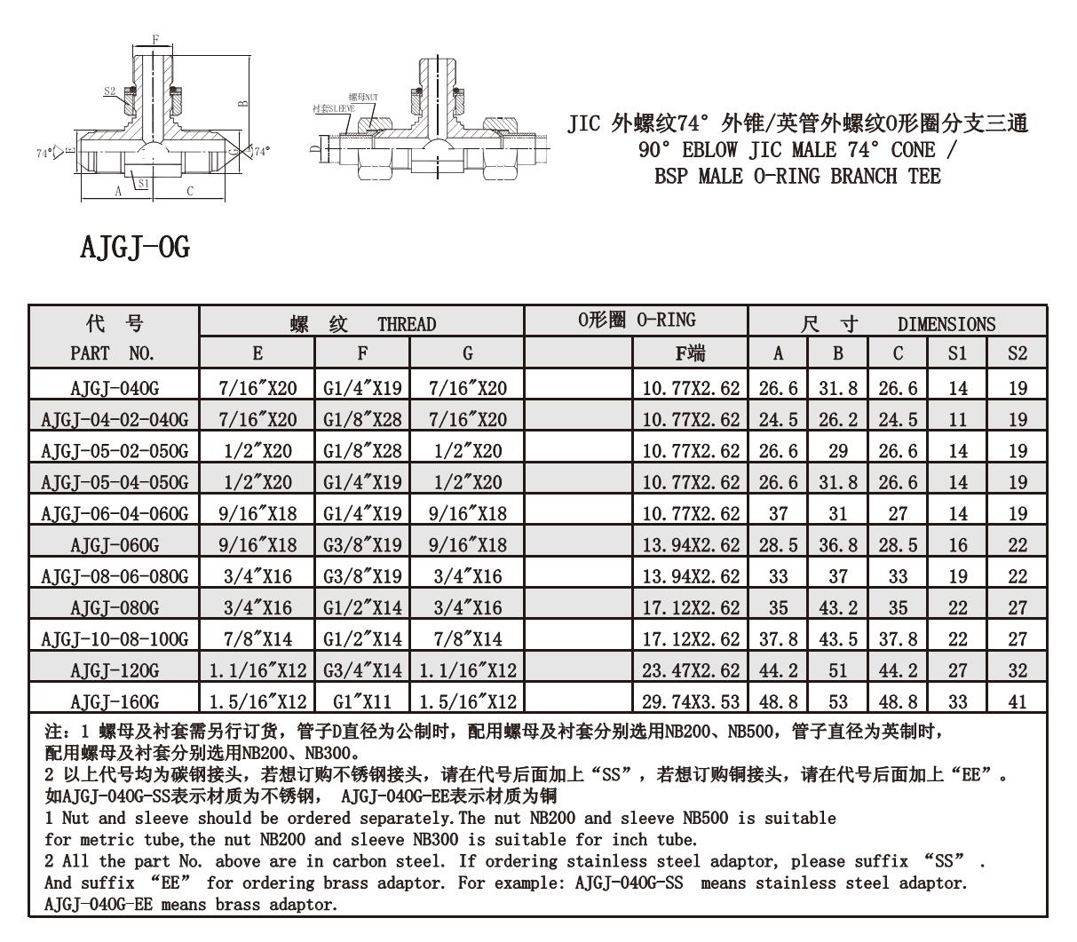 AJGJ-OG JIC 外螺纹74°外锥/英管外螺纹O形圈分支三通