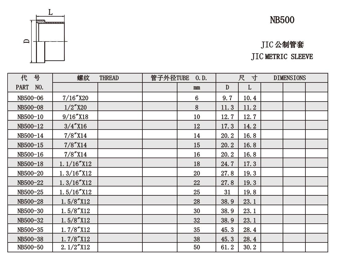 NB500 公制管套